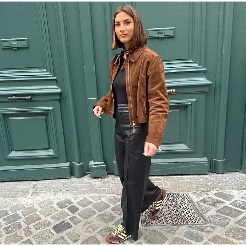 Modellnummer: Vintage Brown Suede Coats Women